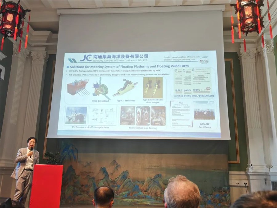 Just-Sea Offshore, as a pioneer and practitioner of technology transformation serving green energy, was invited to participate in this high-level event. At the China Denmark Green Technology Matchmaking and Exchange Conference, Dr. Xu Lixin, director of Jihai Company, director of the Provincial Ship and Marine Engineering Center, and expert enjoying special allowances from the State Council, showcased the company's underwater chain guide products as a typical case of green technology achievements.