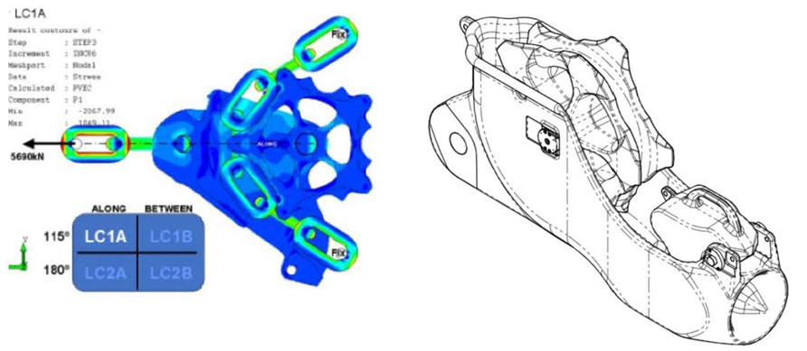 Schematic diagram of finite element analysis related to 1500ton breaking force chain guide.