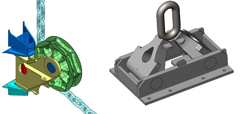 张紧器具有“张紧&导链&止链”等功能,2端链接锚链,无需占用船体空间。